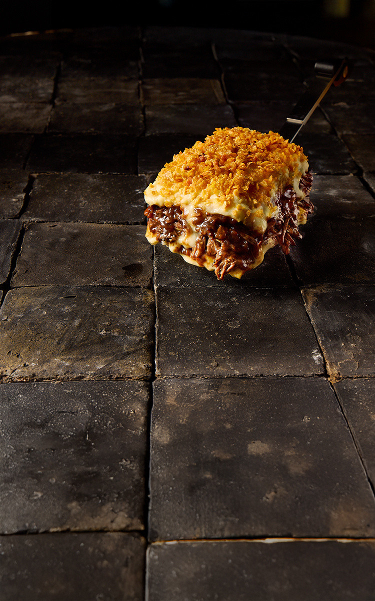 Succulent chunks of braised beef in a rich sauce, layered with fresh egg pasta and béchamel sauce, topped with breadcrumbs.